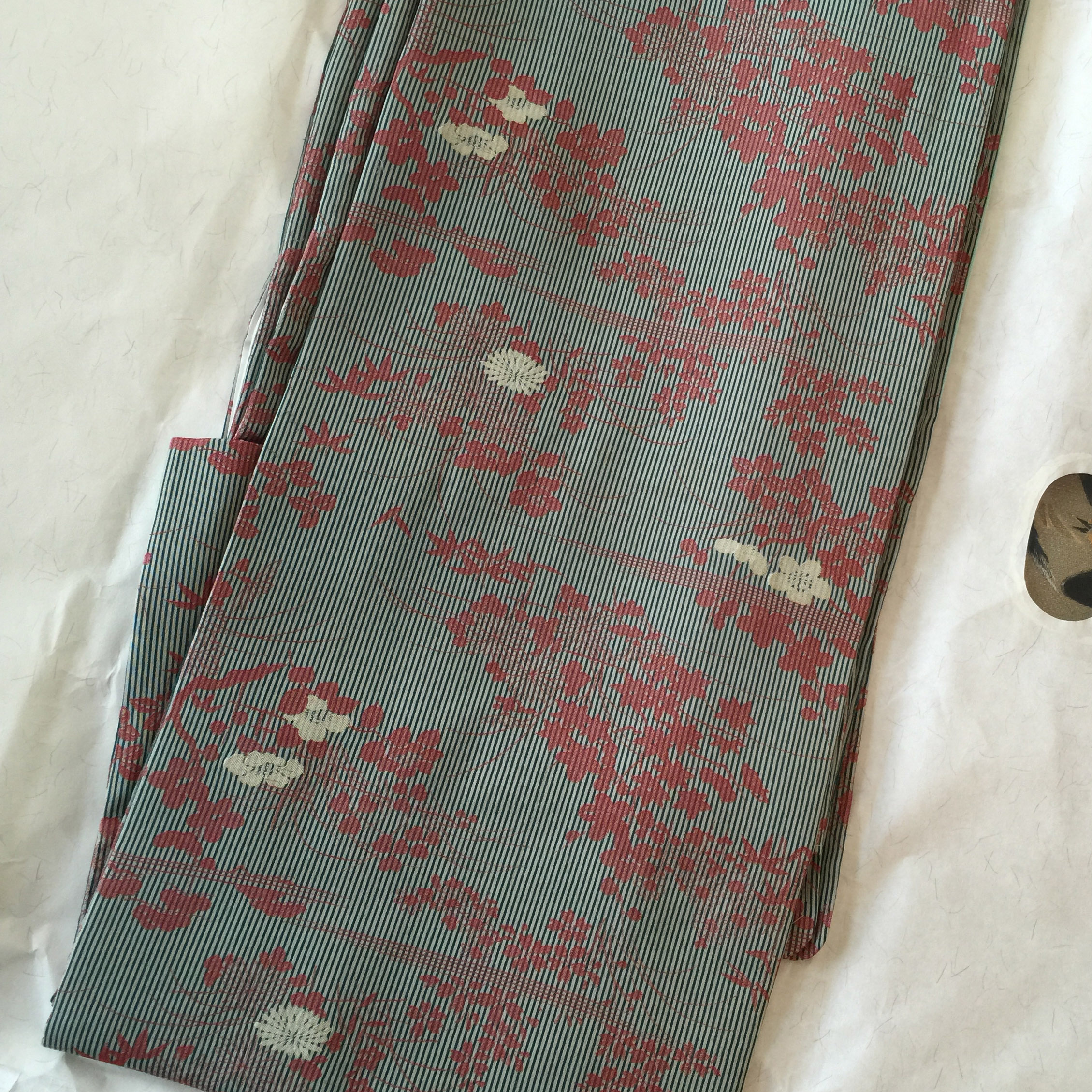 明治最後に生まれた祖母の着物。先生に見ていただいたところ、やはりアンティーックの色はいまの着物と全然違った味があり、また生地がしっかりしているから着物も帯もシワになりにくいとおっしゃっていました。