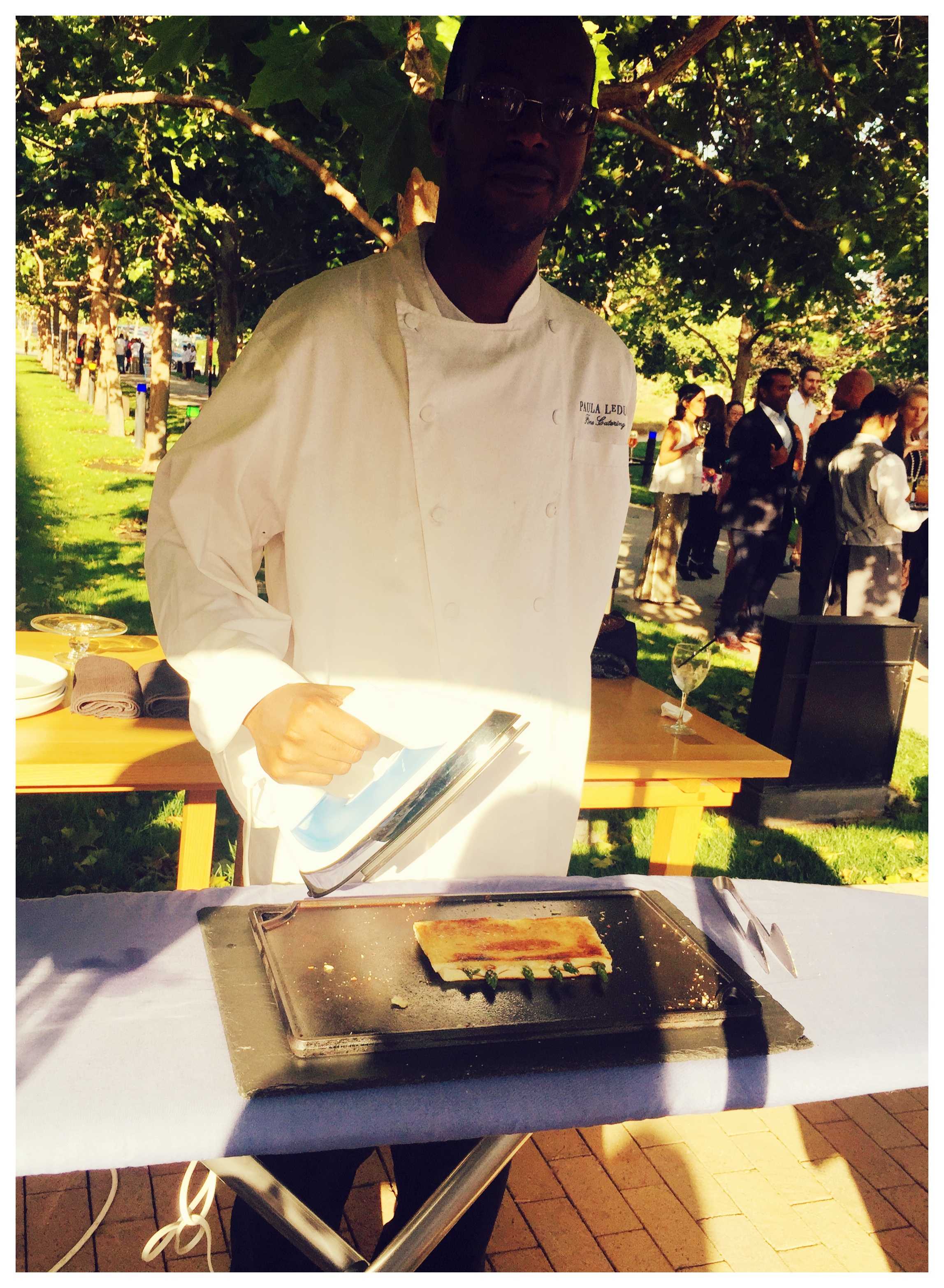 メインディナーが始まる前にはコートヤードでカクテルとフィンガーフードが。こちらはなんとアイロンでホットプレス・サンドを作るというちょっと面白いプレゼンテーション。