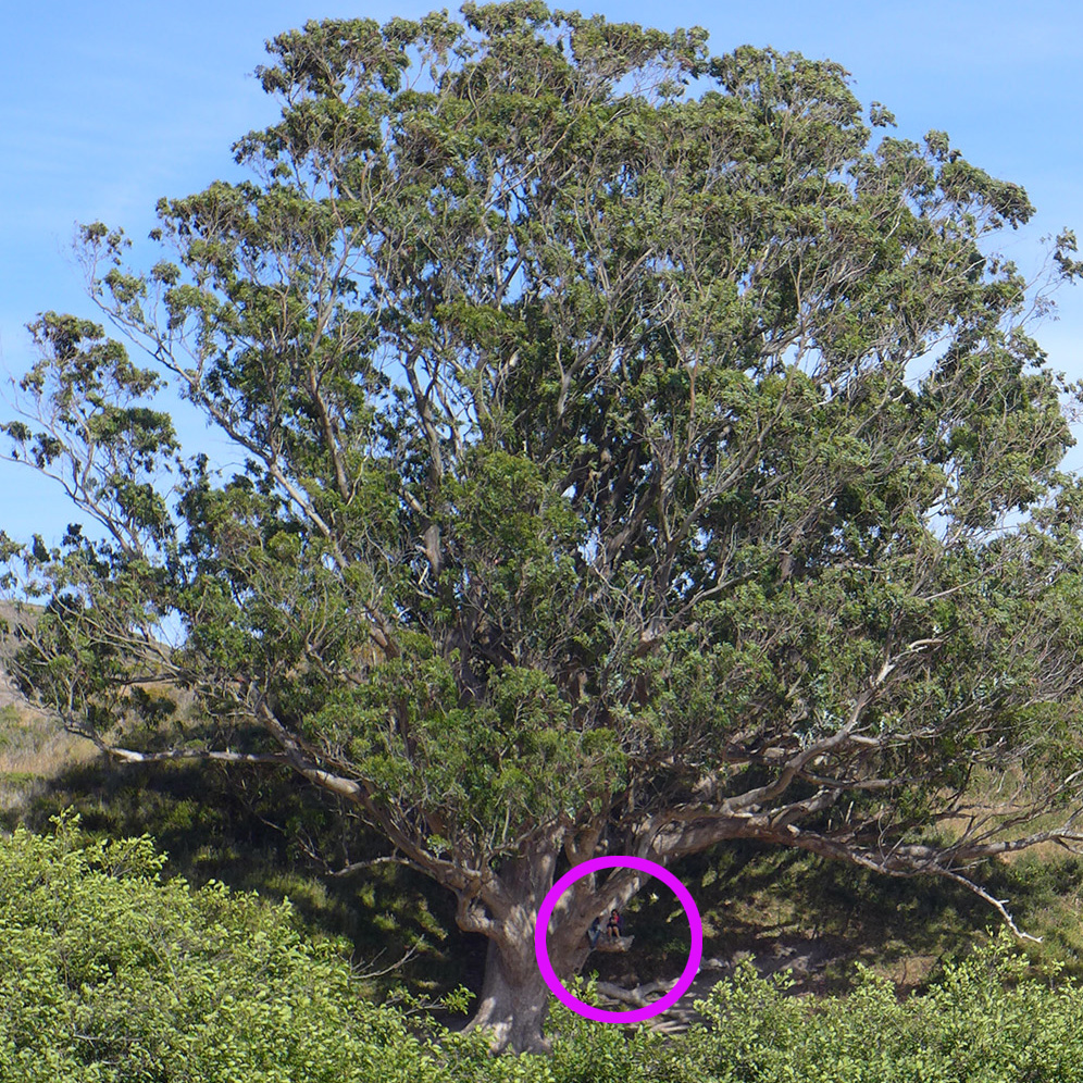 そして、この巨木の写真クリックしてズームして下の枝のところを良く見てください。遠目から気がついたのは私だけでしたが、なんと2人の人が座っています。人の大きさを見るときがどれだけ大きかったかお分かりいただけるかな?