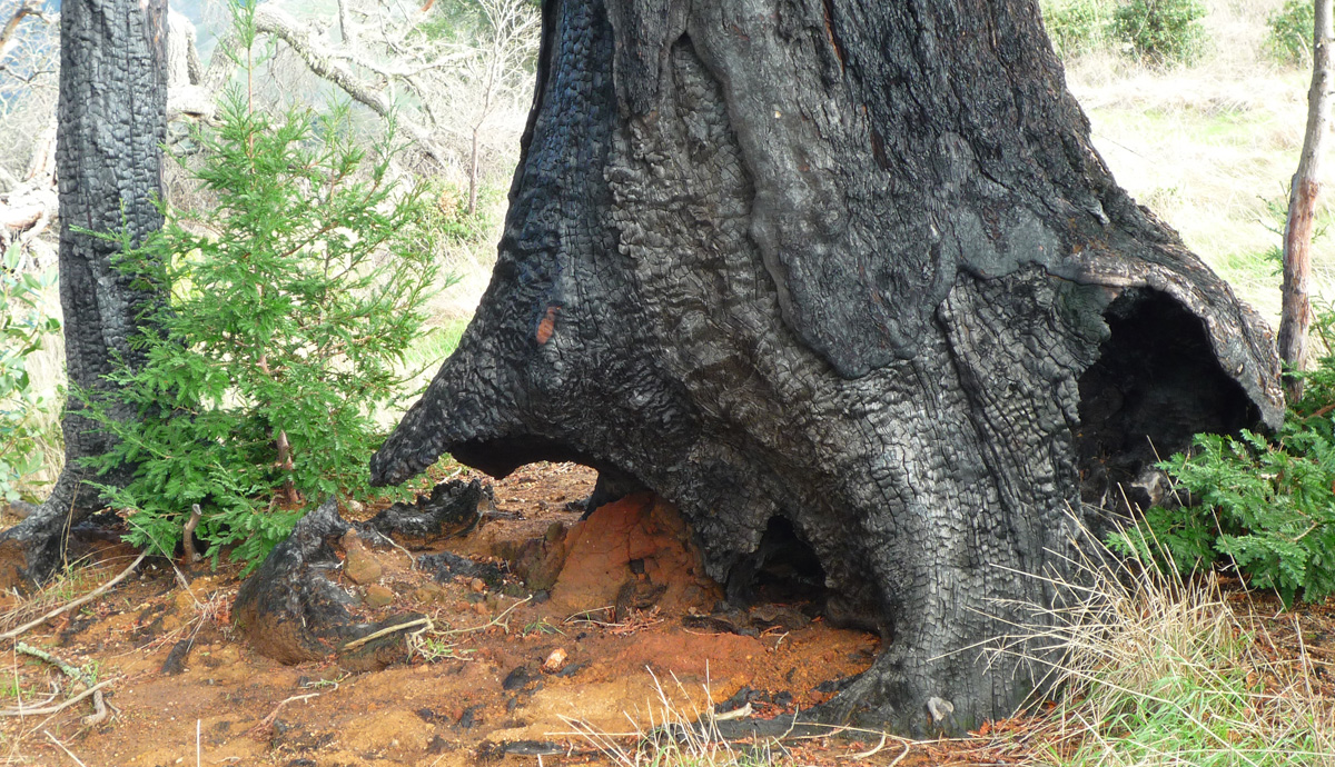 こんなに根元は焼けているのに、まだまだ生き続けている巨大な木、、、すごい生命力