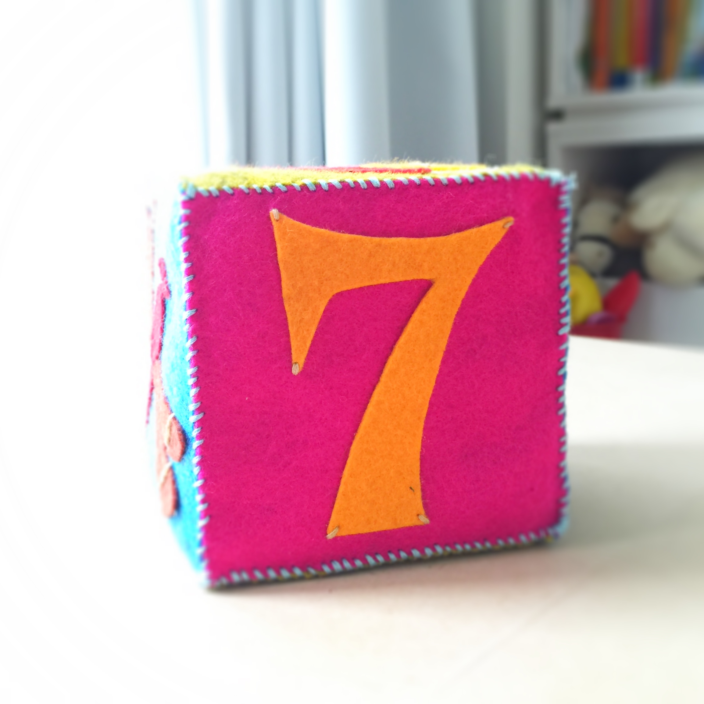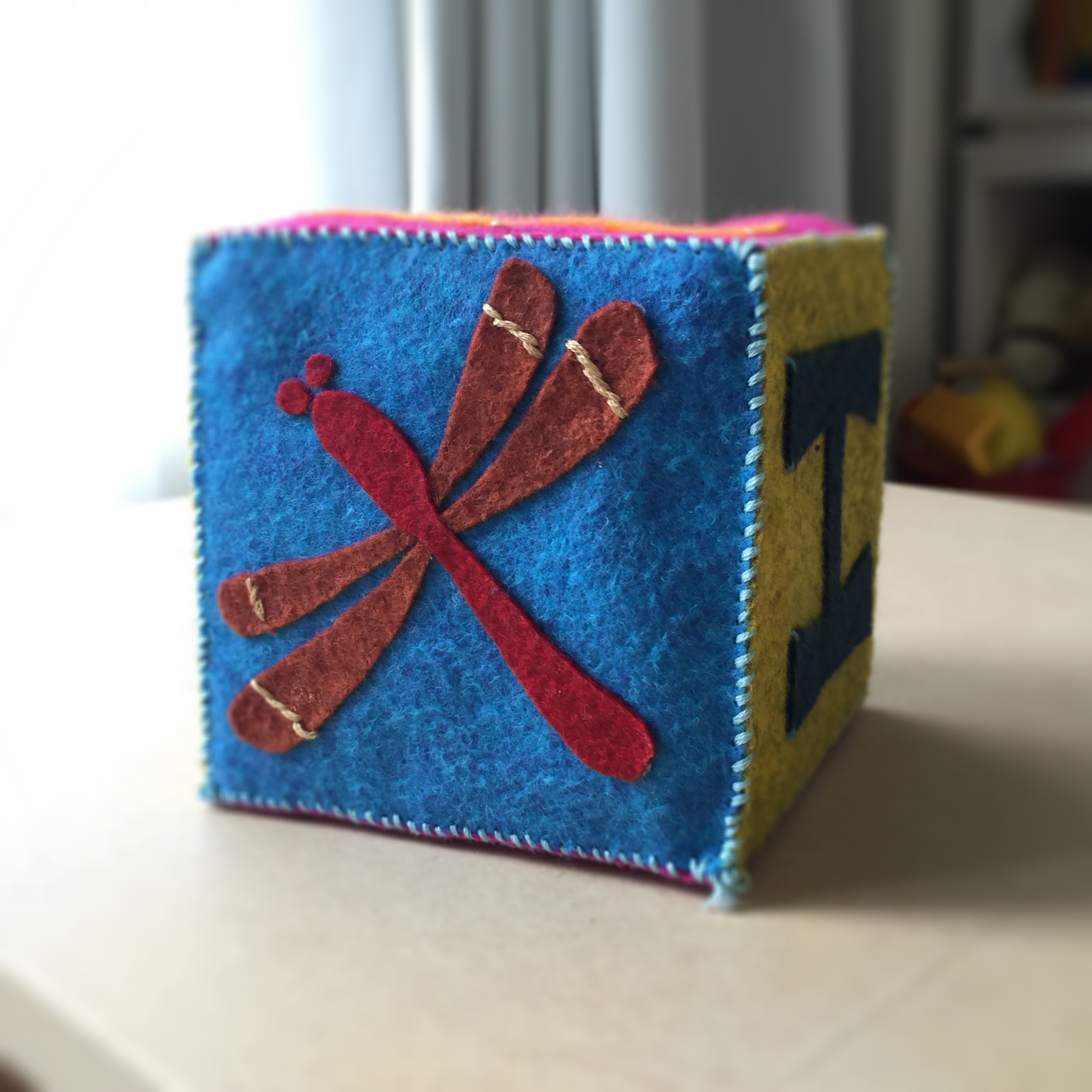 子供の頃の思い出になればと思って、積み立てブロックと言うのでしょうか? 中は柔らかいスポンジなようなもので外はフェルトを使っています。久しぶりに手作業で楽しいのですが、夜ちょっと元気がある時にチマチマやっているので、なかなか進みません。かれこれ3ヶ月ぐらいかかってようやく一つ目。といってもベースはできてデザインもできているので、あとは楽しいところばかり。