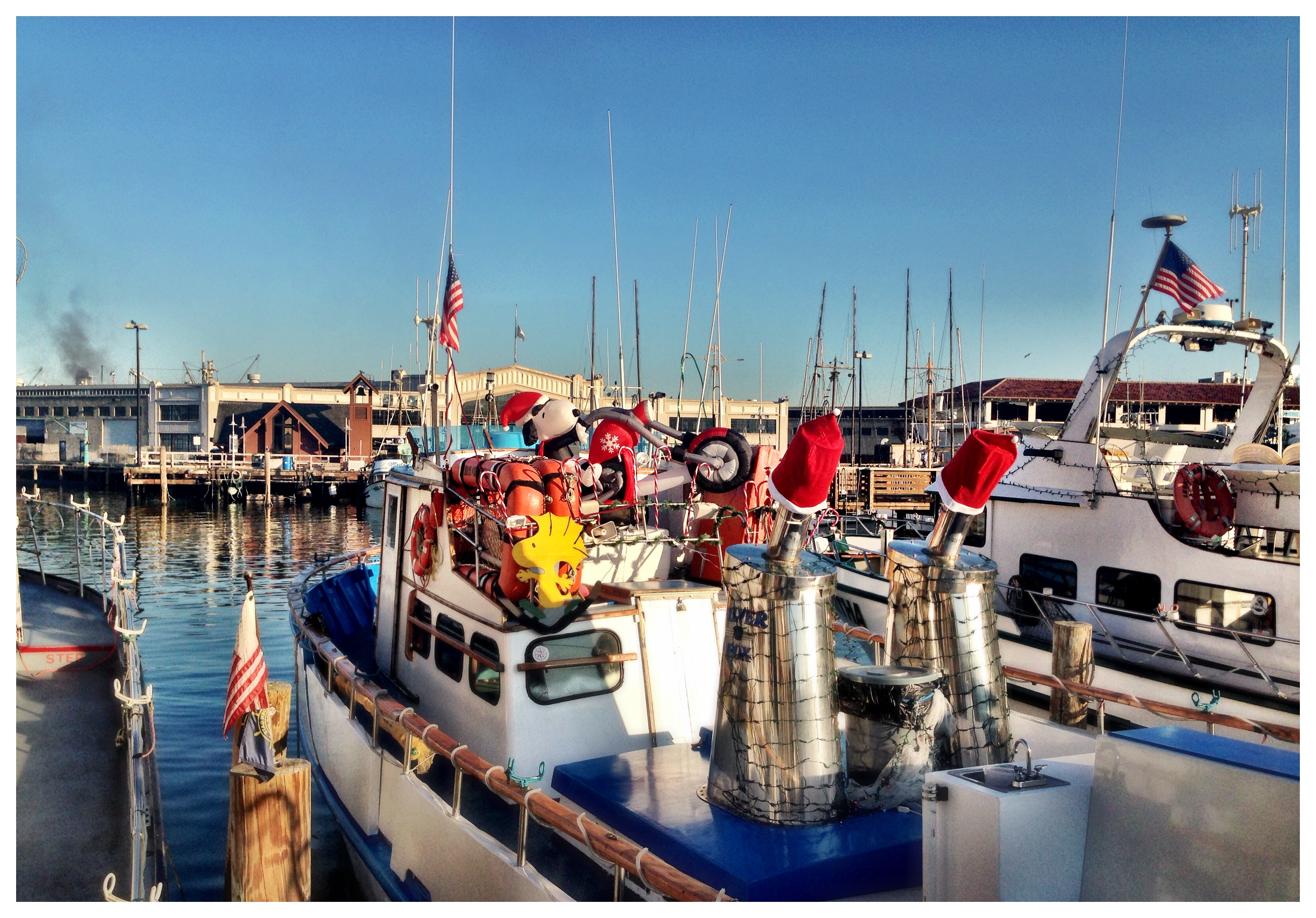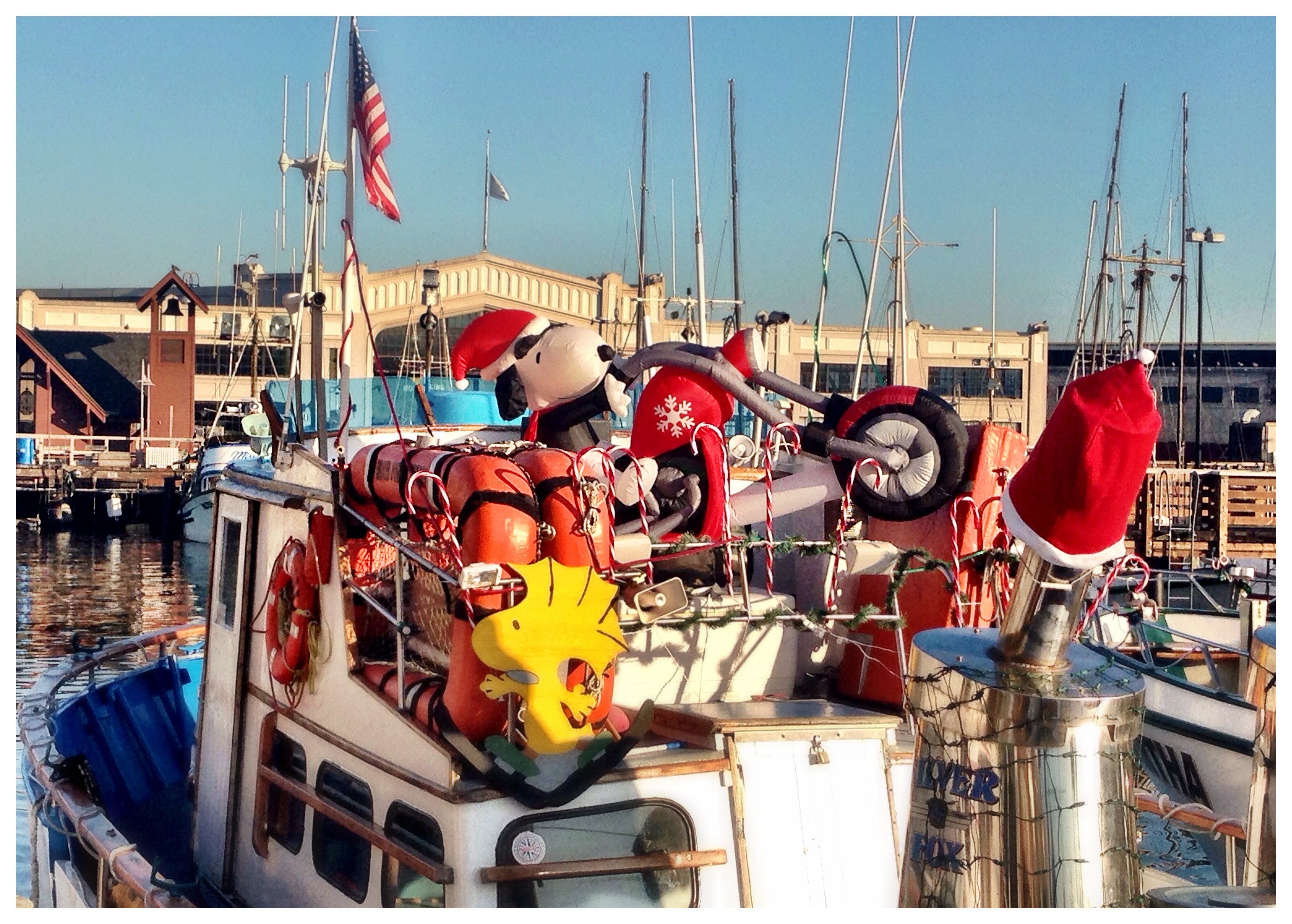 そんなボートの一艘にこんなホリデーデコレーションをしたものを発見!