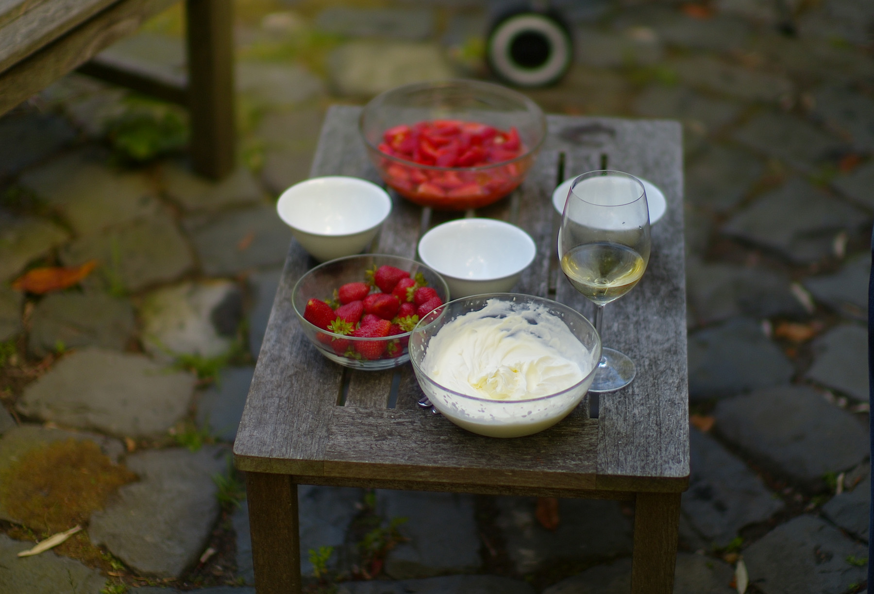 デザートはシシリー風のイチゴのオレンジジュースミックスと、シンプルにホイップクリームのディップ